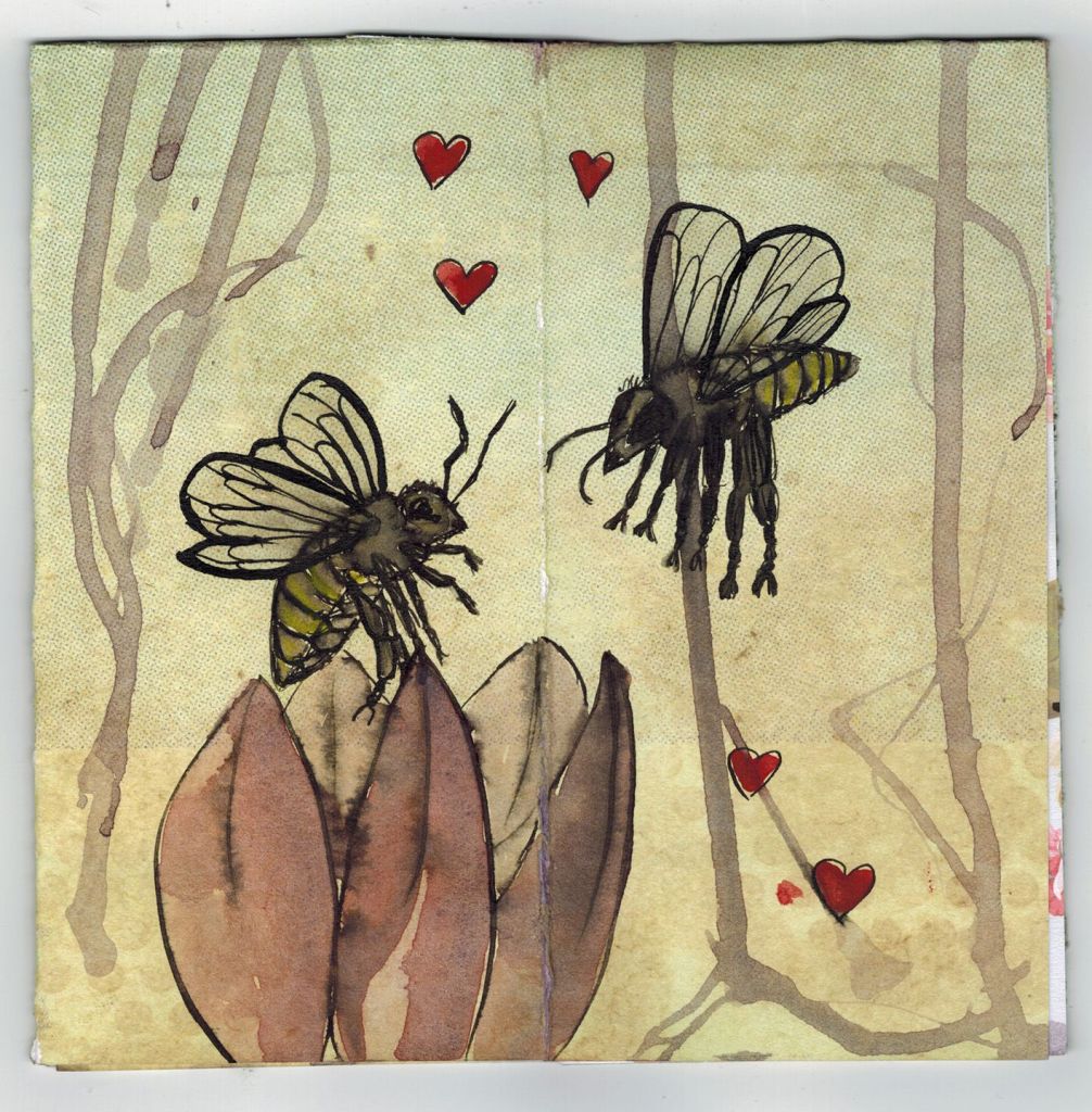 Der Zauber von Bienen und Blumen Eine Liebesgeschichte in vier Bildern Methode und Material: Tinte, Tusche, Spitzfeder, Aquarellfarbe, Designpapier zurück zur Sammlung