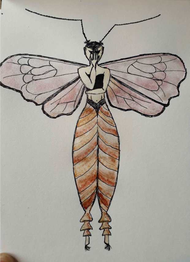 Material und Technik: Tuschestifte, Aquarellfarbe (metallic), Bleistift